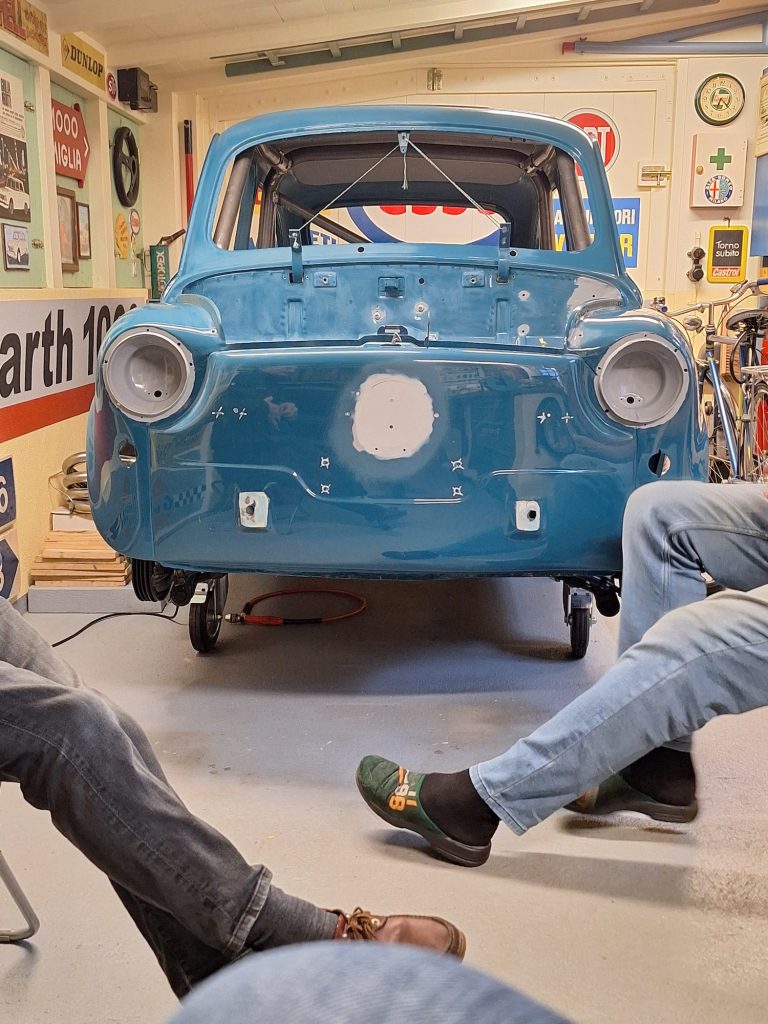 Anche se di formazione é grafico, passando la vita con noi meccanici ecco che si mette a modificare una Fiat 600 del 1965 da normale ad ABARTH ma non un lavorino da poco, un’intera rivoluzione.